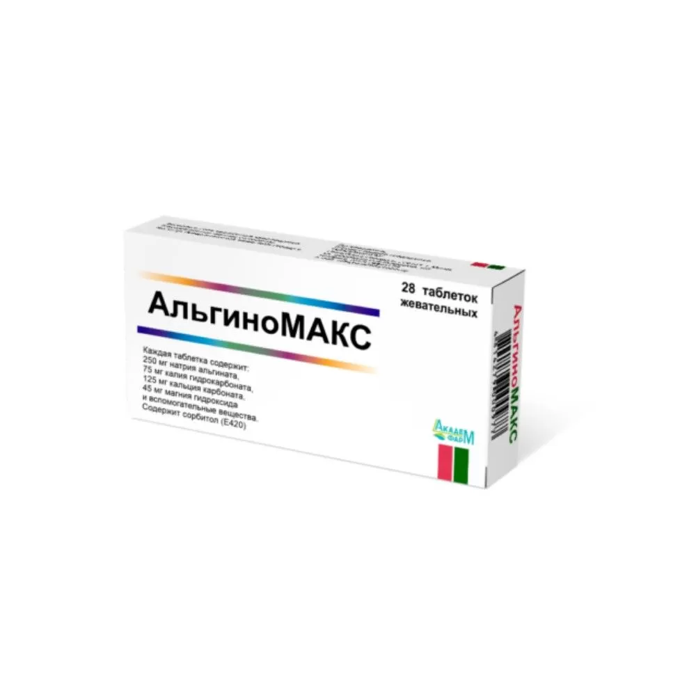 АльгиноМАКС (14х2) жевательные таблетки контурн.ячейков.упак. №28