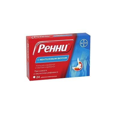 Ренни с ментоловым вкусом 680мг/80мг (12х2) жевательные таблетки блистер №24