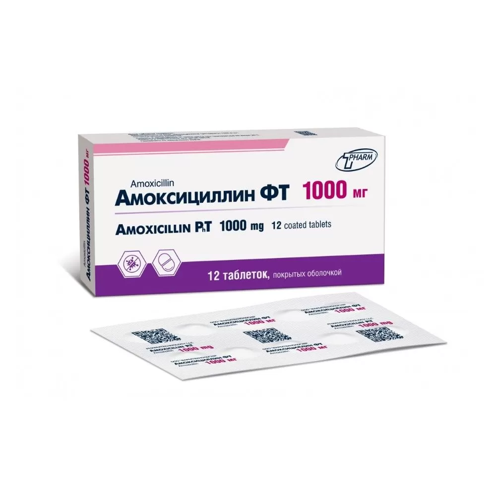 Амоксициллин ФТ таблетки п.п.о. 1000мг (12х1) к/яч. N12