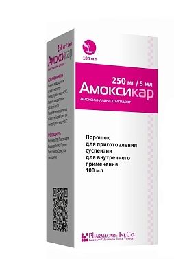 Амоксикар пор-к для приготовления сусп. для приема внутрь 250мг/5мл 100мл порошок флакон №1