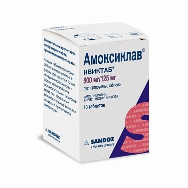 Амоксиклав Квиктаб таблетки диспергируемые 500мг/125мг (5х2) бл. N10