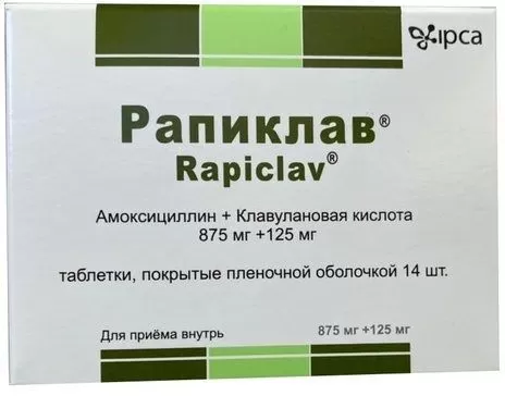 Рапиклав таблетки, п.п.о. 875мг 125мг (2х7) стр. N14