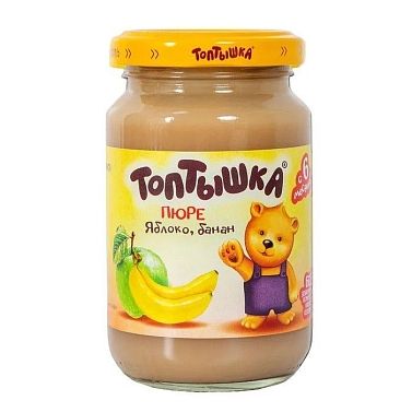 Пюре из яблок и банана б/с Топтышка с 6-мес. 190г банка №1