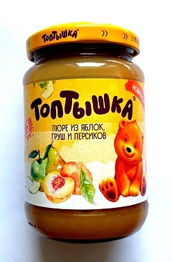Пюре из яблок, груш и персика гомогенизированное стерилизованное Топтышка для детей с 5 мес. 190г бан. N1