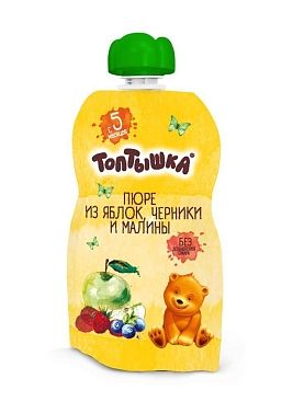 Пюре Топтышка из яблок, черники и малины гомогенизированное стерилизованное для детей с 5 мес. 190г бан. N1