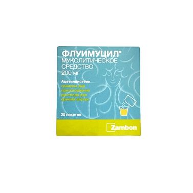Флуимуцил 200мг (1х20) гранулы д.пригот.раствора д.приема внутрь пакет №20