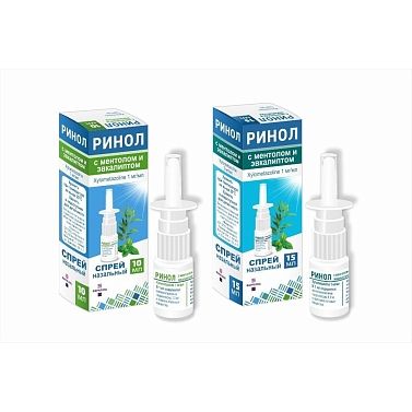 Ринол с ментолом и эвкалиптом 1мг/мл 15мл спрей назальный флакон №1