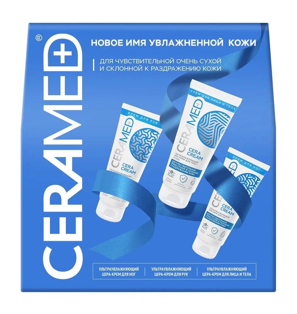 Набор Ceramed: цера-крем для лица и тела ультраувл.100мл,цера-крем для рук ультраувл.75мл, цера-крем для ног 75мл N1