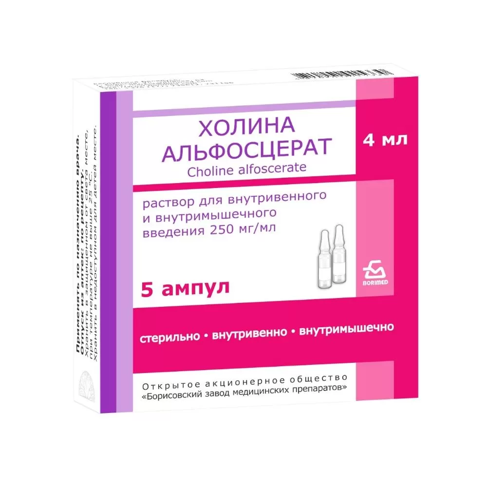 Альфахолин 1000мг/4мл (5х1) раствор для в/в в/м введ. ампулы №5
