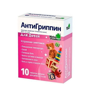 Антигриппин для детей (1х10) таблетки шипучие пенал №10