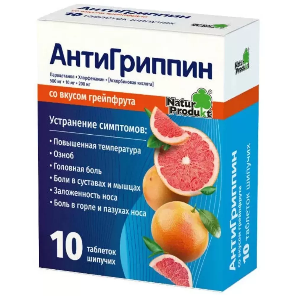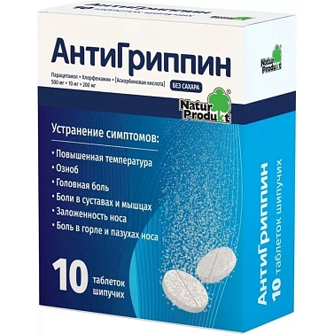 Антигриппин таблетки шипучие таблетки пенал №10