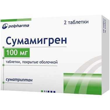 Сумамигрен 100мг (2х1) таблетки покр.плен.обол. контурн.ячейков.упак. №2