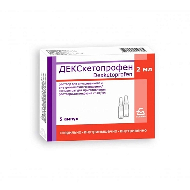 ДЕКСкетопрофен раствор для в/в и в/м введения/концентрат для приготовления инф. 25мг/мл ампулы 2мл амп. N5