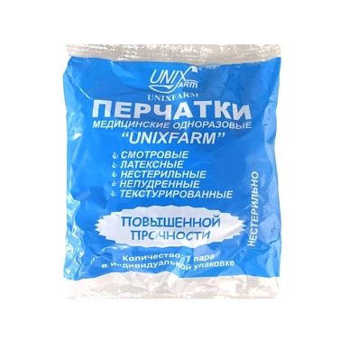 Перчатки нестерильные L непудренные смотровые латексные фасованные Unixfarm индивидуальная упаковка пара N1