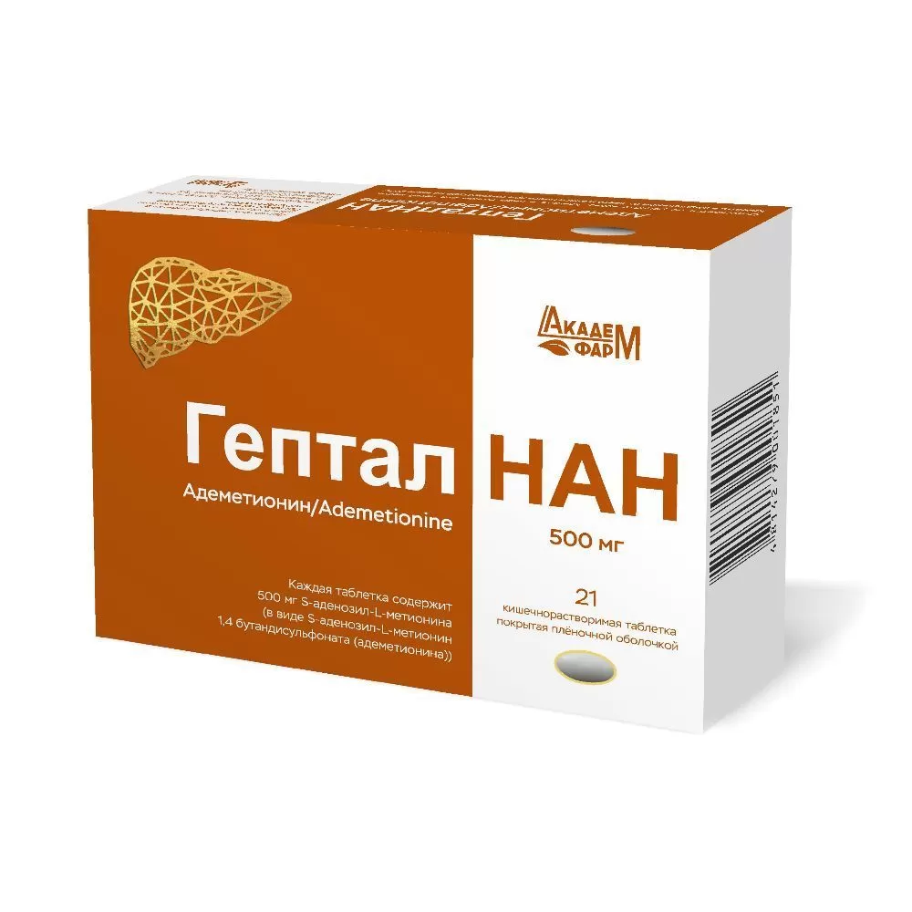 ГепталНАН 500мг (7х3) таблетки покр.кишечнор-римой обол. контурн.ячейков.упак. №21