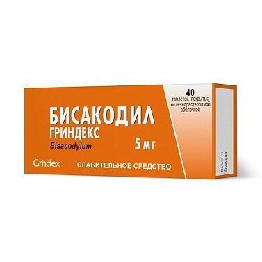 Бисакодил Гриндекс таблетки покрытые кишечнорастворимой оболочкой 5мг (10х4) уп N40