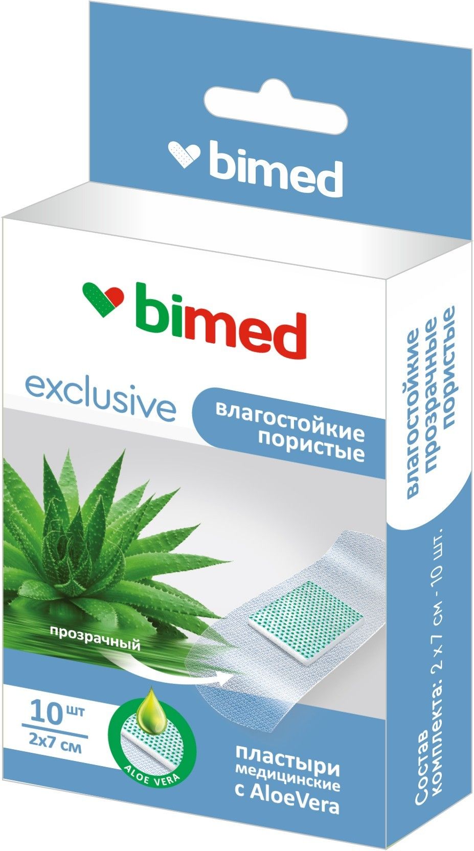 Пластыри мед.Бимед влагостойкие пористые прозрачные нестер. 7х2см Алоэ Вера №10