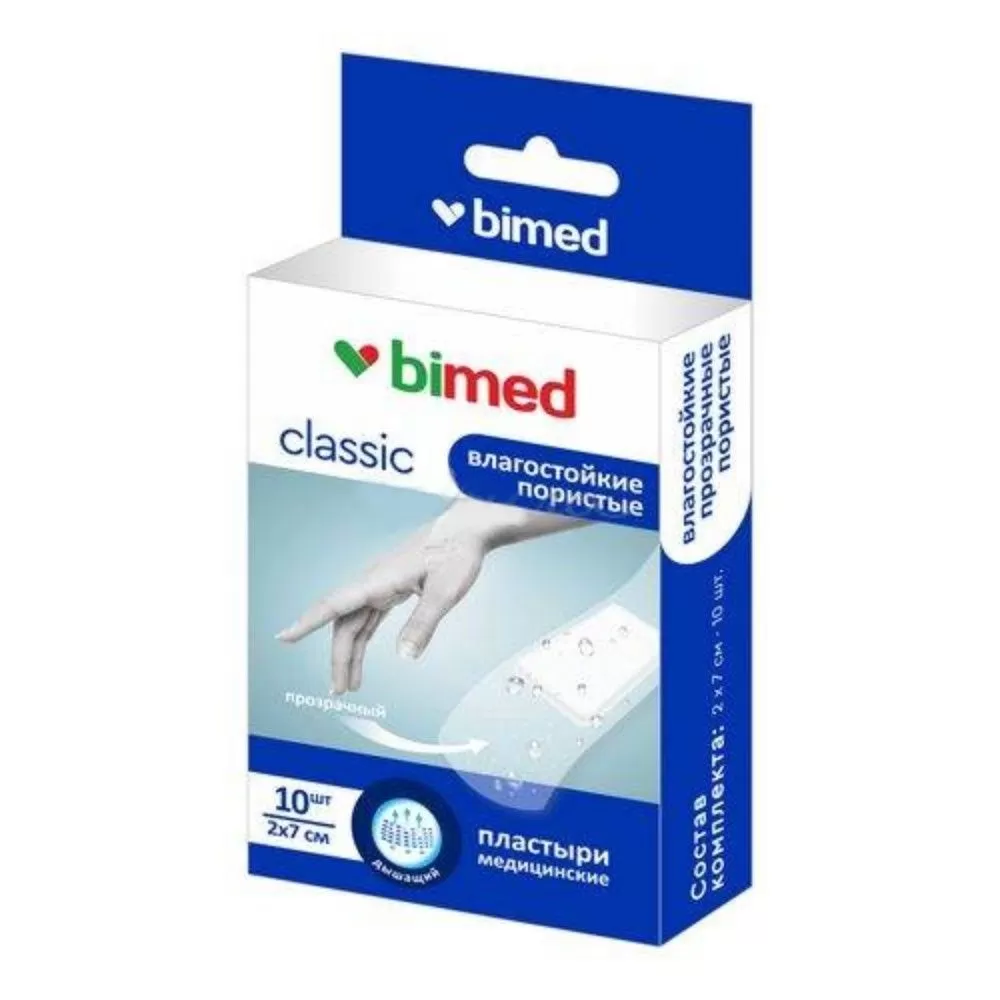 Пластыри мед.Бимед влагост.порист.прозрачн 2x7см №10