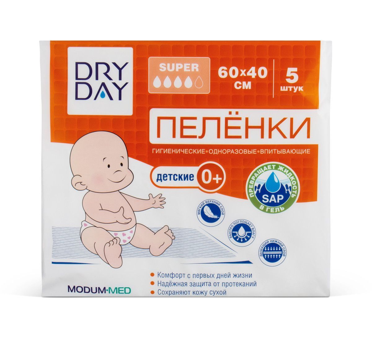 Пеленки впитывающие детские одноразовые Dry Day Super 60х40 N5