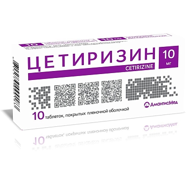 Цетиризин-АМ таблетки покрытые пленочной оболочкой 10мг (10х1) к/яч. N10