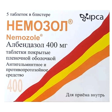 Немозол таблетки п.п.о.400мг по 5 шт. в первичной уп. по 1 шт. во вторичной уп. (5х1) бл/п N5