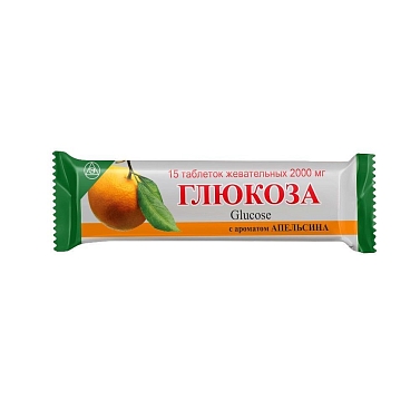 Глюкоза таблетки жеват. (с ароматом апельсина) 2 000мг уп. N15