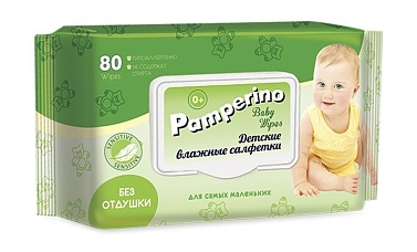 Салфетки влажные детские Pamperinо без отдушки 0+ с клапаном №80