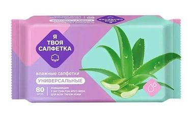 Салфетки влажные очищающие универс. с алоэ вера Я твоя салфетка №80