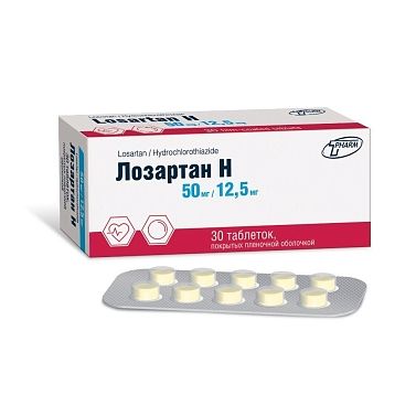 Лозартан Н таблетки п.п.о. 50мг/12,5мг по 10шт в перв. уп. по 3шт во втор.уп. (10х3) яч/п N30