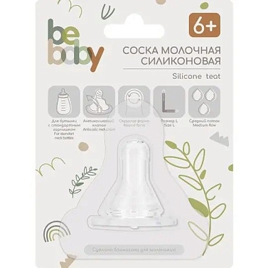 Соска молочная силиконовая Be baby 6+ арт.R-01S/L N1