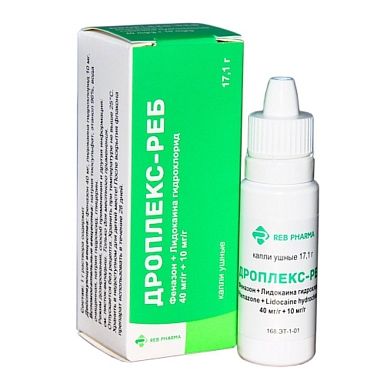 Дроплекс-Реб капли ушные (40мг+10мг)/1г 17,1г капли флакон №1