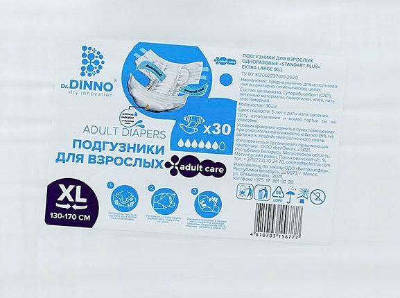 Подгузники впитывающие для взрослых Dr.DINNO Standart Plus XL (130-170см) №30