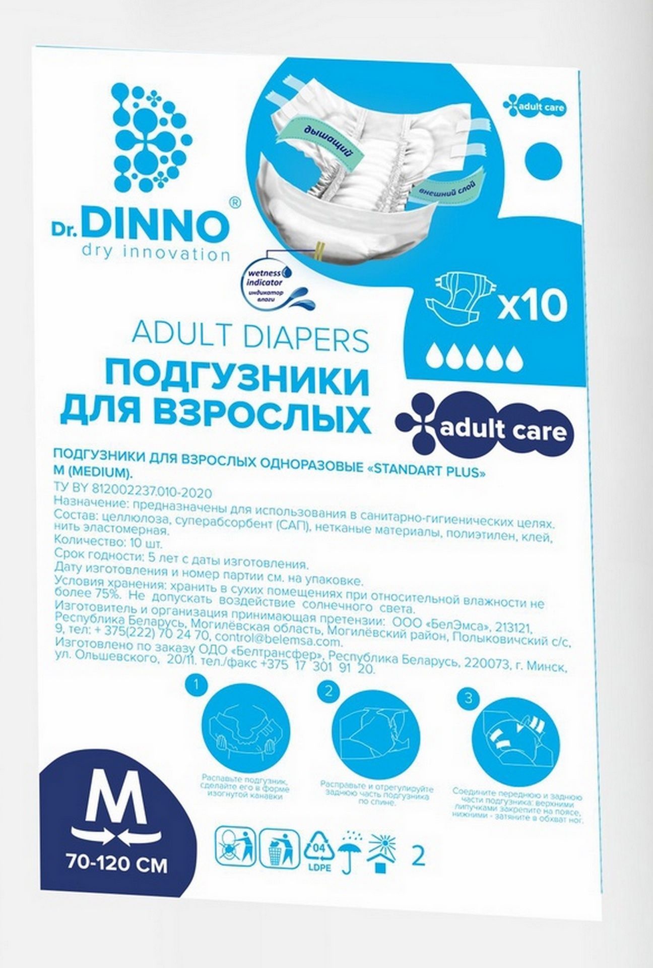 Подгузники впитывающие для взрослых Dr.DINNO Standart Plus M (70-120см) №10