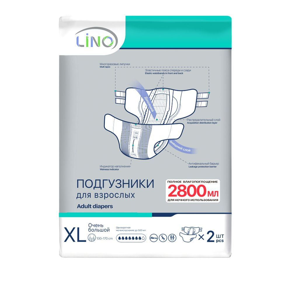 Подгузники впитывающие для взрослых LINO XL 130-170см №2