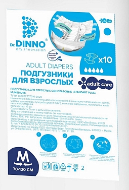 Подгузники впитывающие для взрослых Dr.DINNO Standart Plus M (70-120см) N10