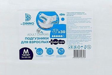 Подгузники впитывающие для взрослых Dr.DINNO Standart Plus М (70-120см) N30