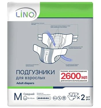 Подгузники впитывающие для взрослых LINO М (75-120см) №2