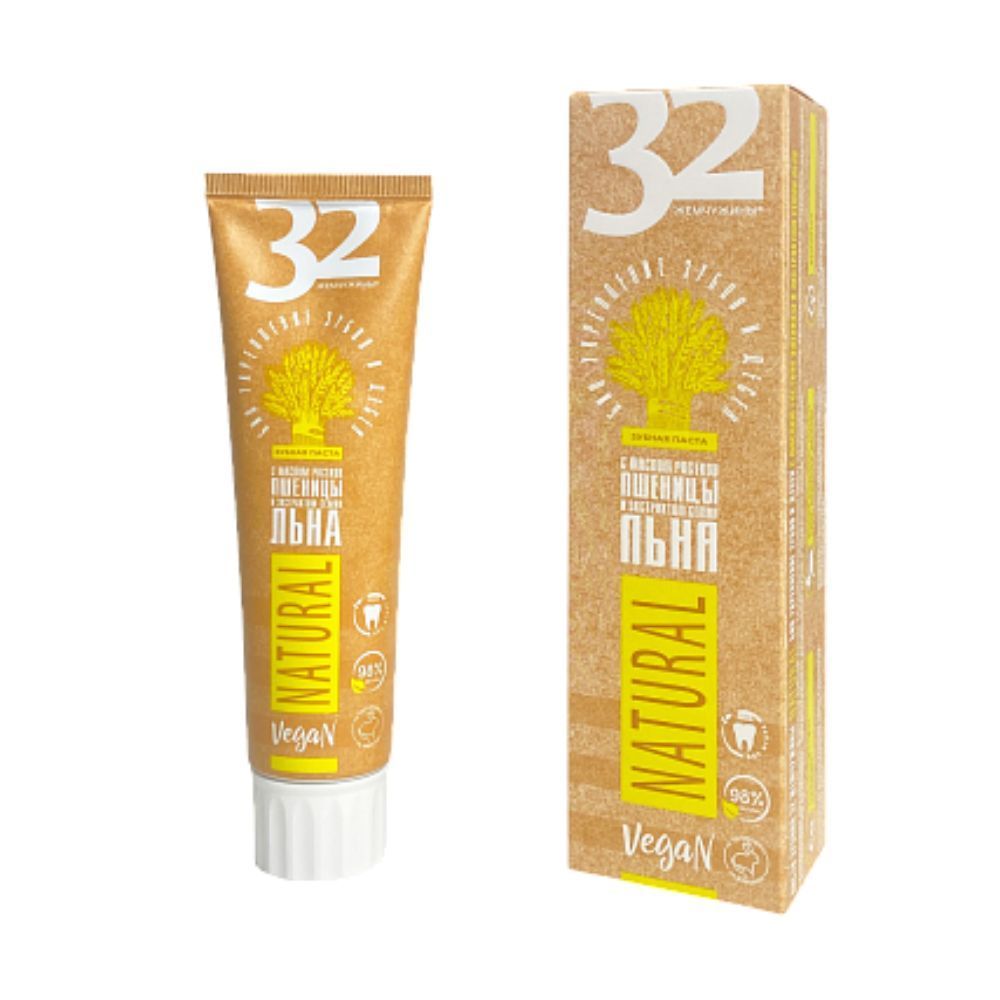 Зубная паста 32 Жемчужины Natural Био укрепление зубов и десен с маслом ростков пшеницы и экср.семян льна 100г N1