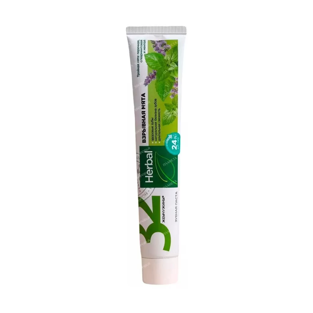 Зубная паста 32 Жемчужины HERBAL Взрывная мята 100г N1