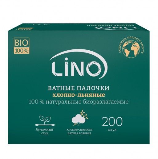 Ватные палочки Lino классические хлопко-льняные на бумажных стиках пачка картонная №200