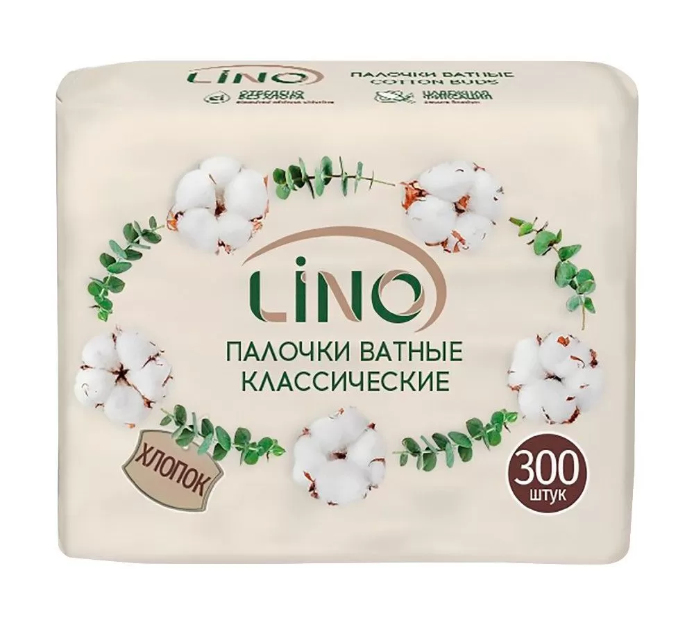 Ватные палочки классические Lino (полиэтиленовая мягкая упаковка) N300