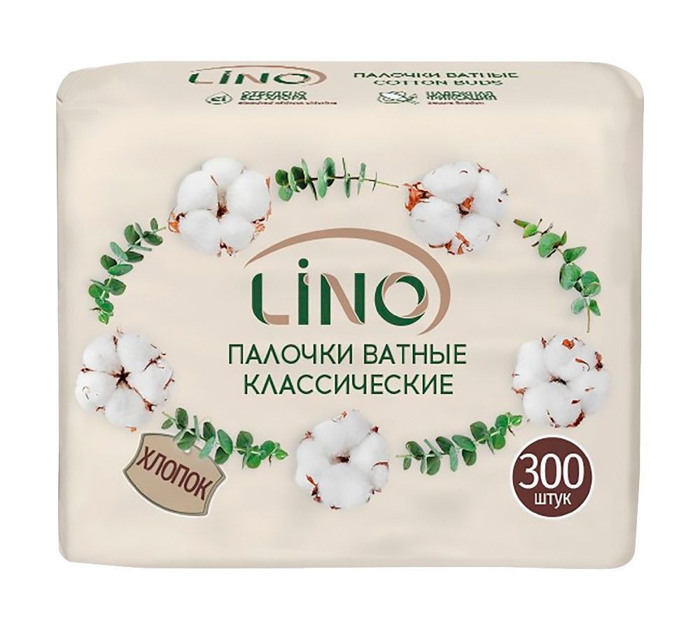 Ватные палочки классические Lino (полиэтиленовая мягкая упаковка) N300