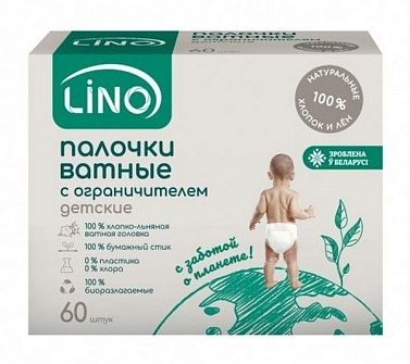 Ватные палочки Lino для детей с ограничителем хлопко-льняные пачка картонная №60