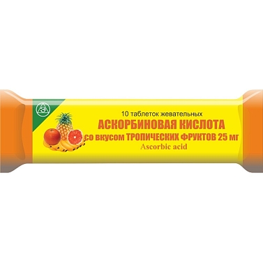 Аскорбиновая кислота со вкусом троп.фруктов 25мг (10х1) жевательные таблетки упаковка №10