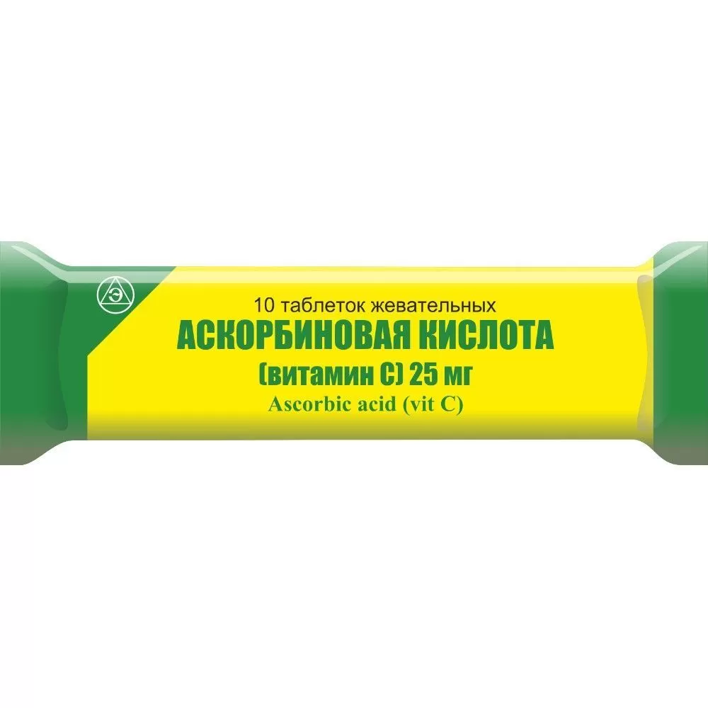 Аскорбиновая кислота таблетки жевательные со вкусом малины 25мг (10х1) бл.пм N10