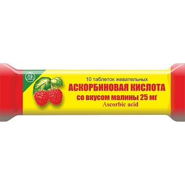 Аскорбиновая кислота таблетки жевательные (со вкусом малины) 25мг уп N10