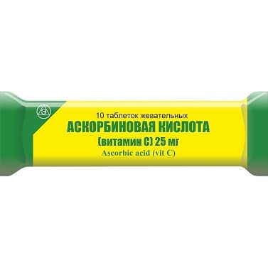 Аскорбиновая кислота (витамин С) таблетки жевательные 25мг уп. N10