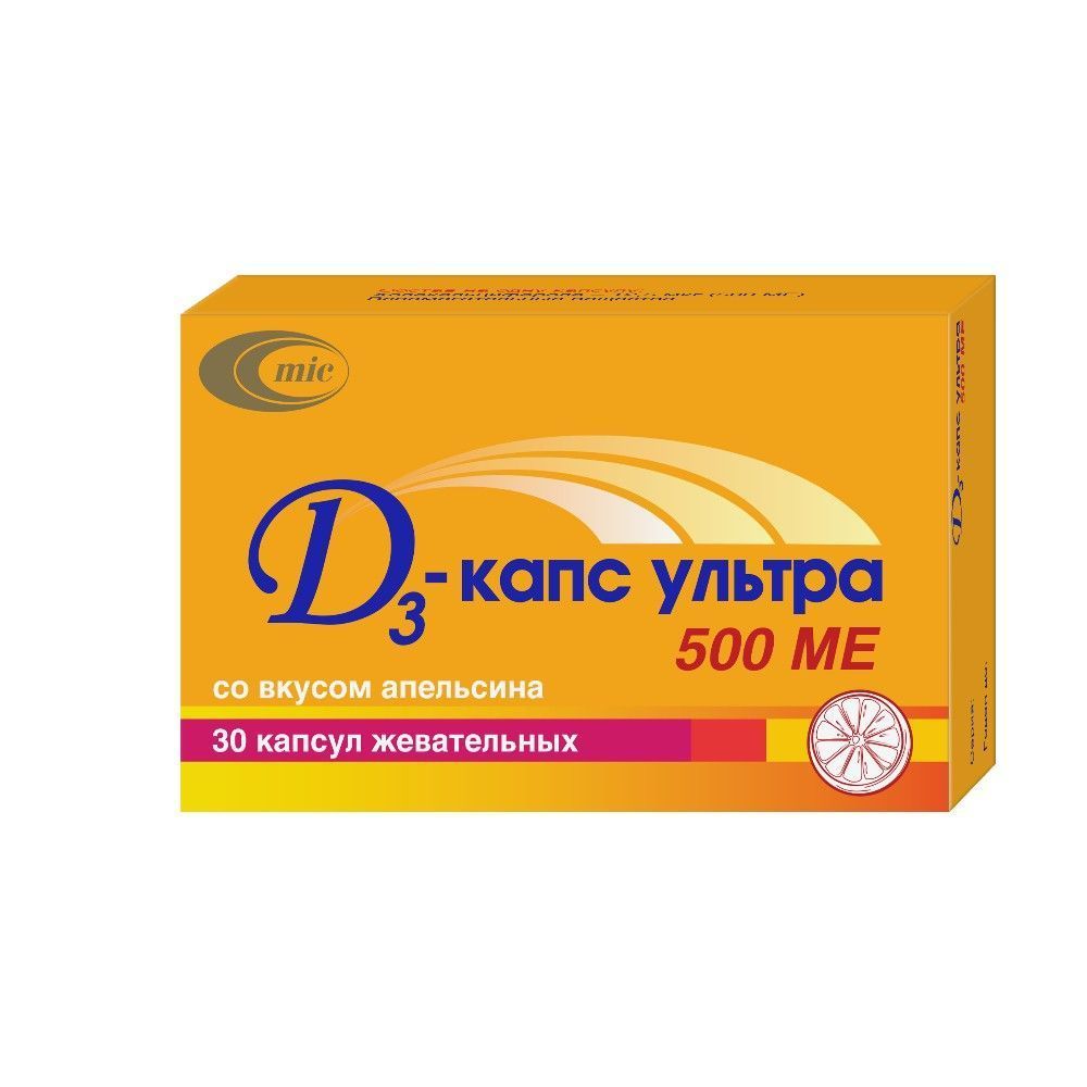 Д3-капс Ультра капсулы жеват.со вкус.банана 500МЕ по 10шт в первичной уп. по 3шт во вторичной уп. (10х3) яч/п N30