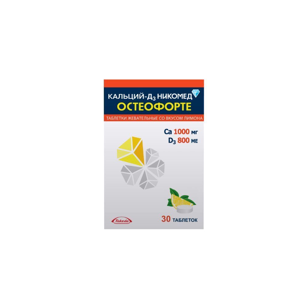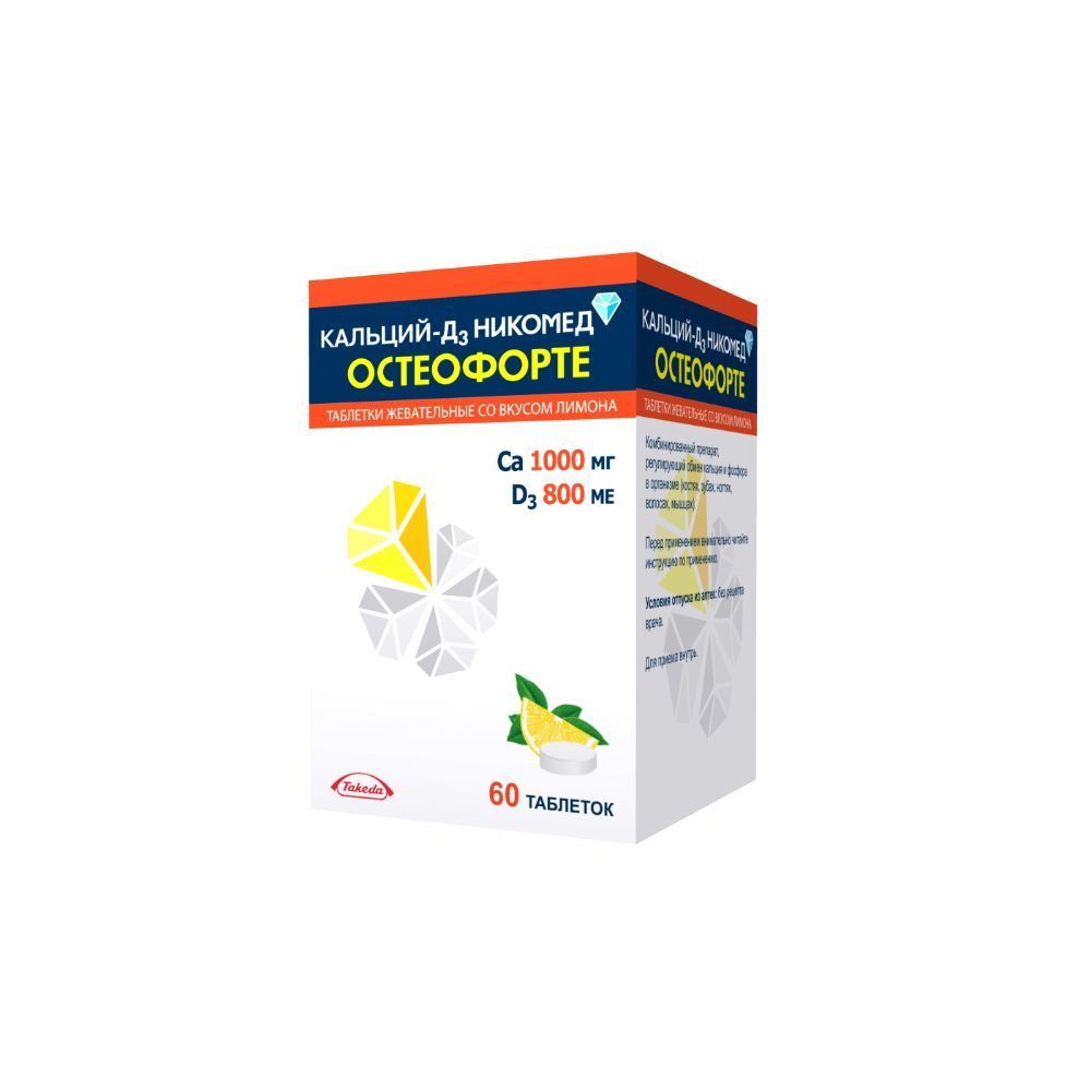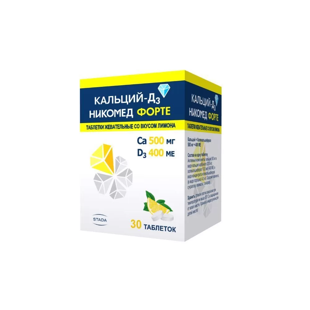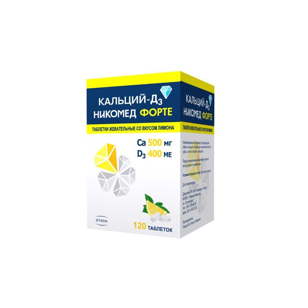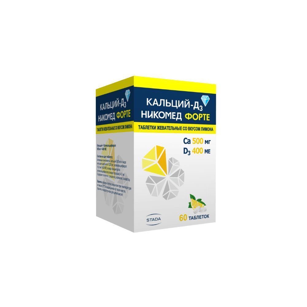 Кальций-Д3 Никомед форте вкус лимона 500мг/400ме жевательные таблетки флакон №60