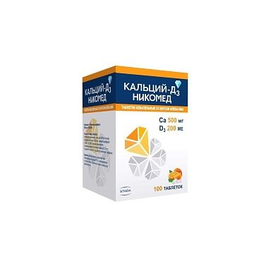 Кальций-Д3 Никомед вкус апельсина 500мг/ 200ме жевательные таблетки флакон №100